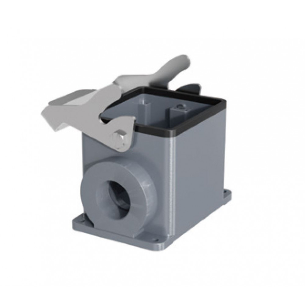 Основание разъема на панель, закрытое, типоразмер 32B, с уплотнителем, 1 отверстие с резьбой для кабельных вводов PG36, с одной металлической защелкой, без защитной крышки, материал корпуса: алюминиевый сплав