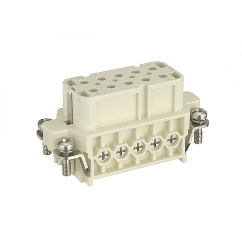 Розеточная контактная вставка HA-010-F, Розеточная контактная вставка, винтовая фиксация, 10 полюсов + PE, типоразмер 10A, 250V, 16A, сечение обслуживаемых проводников 0,75-2,5 мм кв, тип покрытия контактов: серебро