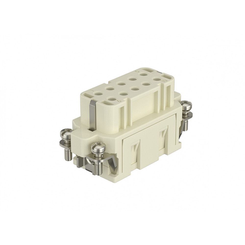 Розеточная контактная вставка HA-010-FC, Розеточная контактная вставка, обжимная фиксация, 10 полюсов + PE, типоразмер 10A, 250V, 16A, (обжимные контакты поставляются отдельно)