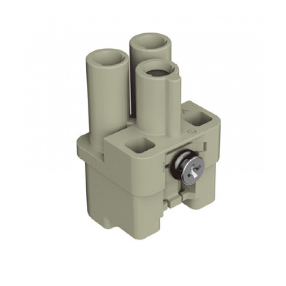 Вилочная контактная вставка HQ-002-MC, Вилочная контактная вставка, обжимная фиксация, 2 полюса + PE, типоразмер 3A, 400V, 40A, (обжимные контакты поставляются отдельно)