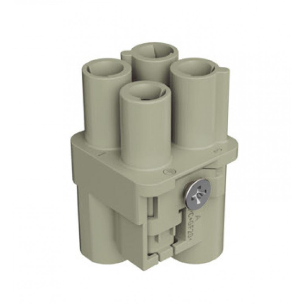 Вилочная контактная вставка HQ-003-MC, Вилочная контактная вставка, обжимная фиксация, 3 полюса + PE, типоразмер 3A, 400V, 40A, (обжимные контакты поставляются отдельно)