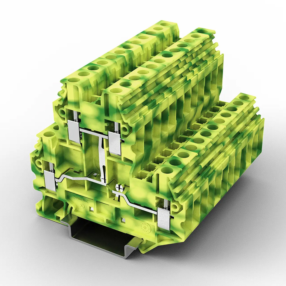 Заземляющая этажная клемма, 2 этажа, тип фиксации провода: винтовой, номинальное сечение: 4 мм кв., ширина: 6,2 мм, цвет: желто-зеленый, тип монтажа: DIN35 стандарт GB/T14048.1