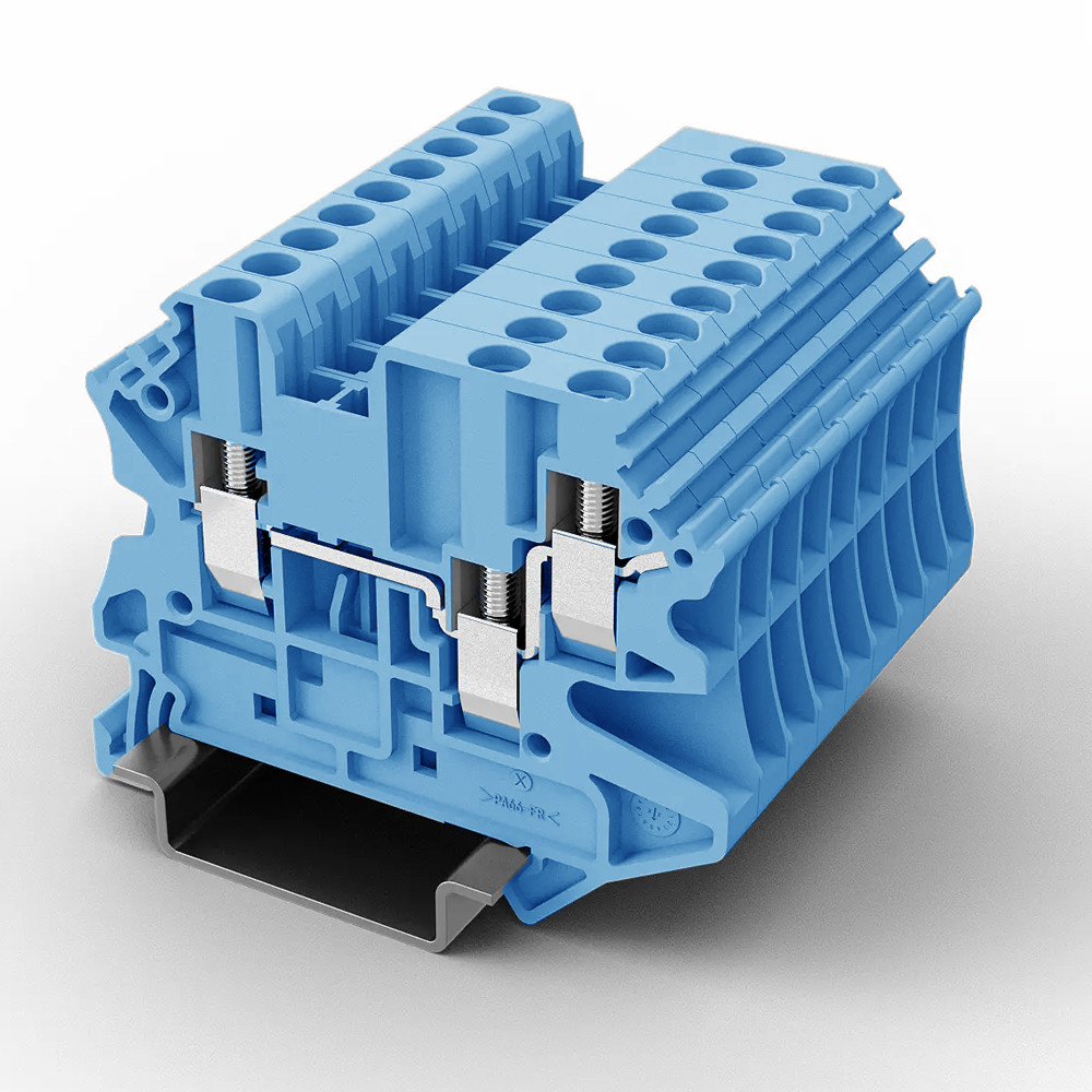 Доставка Проходная клемма UUK-2.5/1-2-BE , Проходная клемма, 3 точки подключения, тип фиксации провода: винтовой, номинальное сечение: 2,5 мм кв., 24A, 500V, ширина: 5,2 мм, цвет: синий, тип монтажа: DIN35