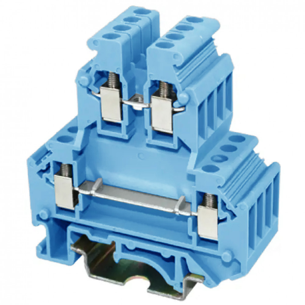 Этажная клемма, 2 этажа, тип фиксации провода: винтовой, номинальное сечение: 2,5 мм кв., 24A, 500V, ширина: 5,2 мм, цвет: синий, тип монтажа: DIN35