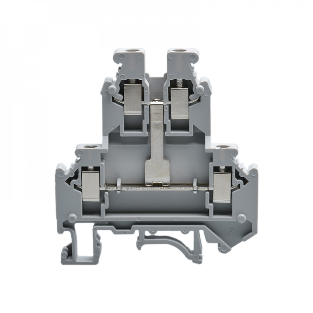 Этажная клемма JUT1-2.5/2L-GY, Этажная клемма, 2 этажа, межэтажное соединение, тип фиксации провода: винтовой, номинальное сечение: 2,5 мм кв., 24A, 500V, ширина: 5,2 мм, цвет: серый, тип монтажа: DIN35