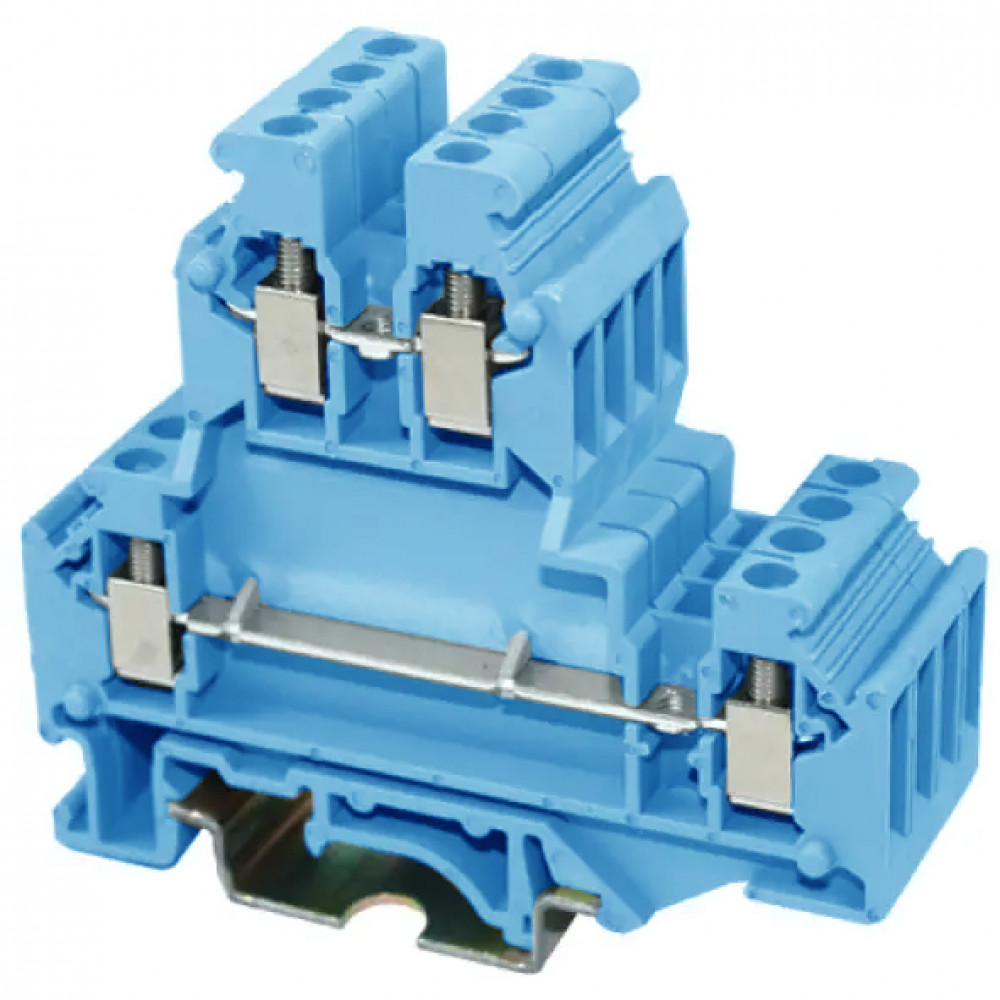 Этажная клемма, 2 этажа, тип фиксации провода: винтовой, номинальное сечение: 2,5 мм кв., 24A, 500V, ширина: 5,2 мм, цвет: синий, тип монтажа: DIN35