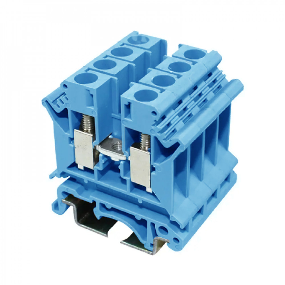 Проходная клемма, тип фиксации провода: винтовой, номинальное сечение: 6 мм кв., 41A, 800V, ширина: 8,2 мм, цвет: синий, тип монтажа: DIN35, винтовая перемычка, зажимная клетка: латунь