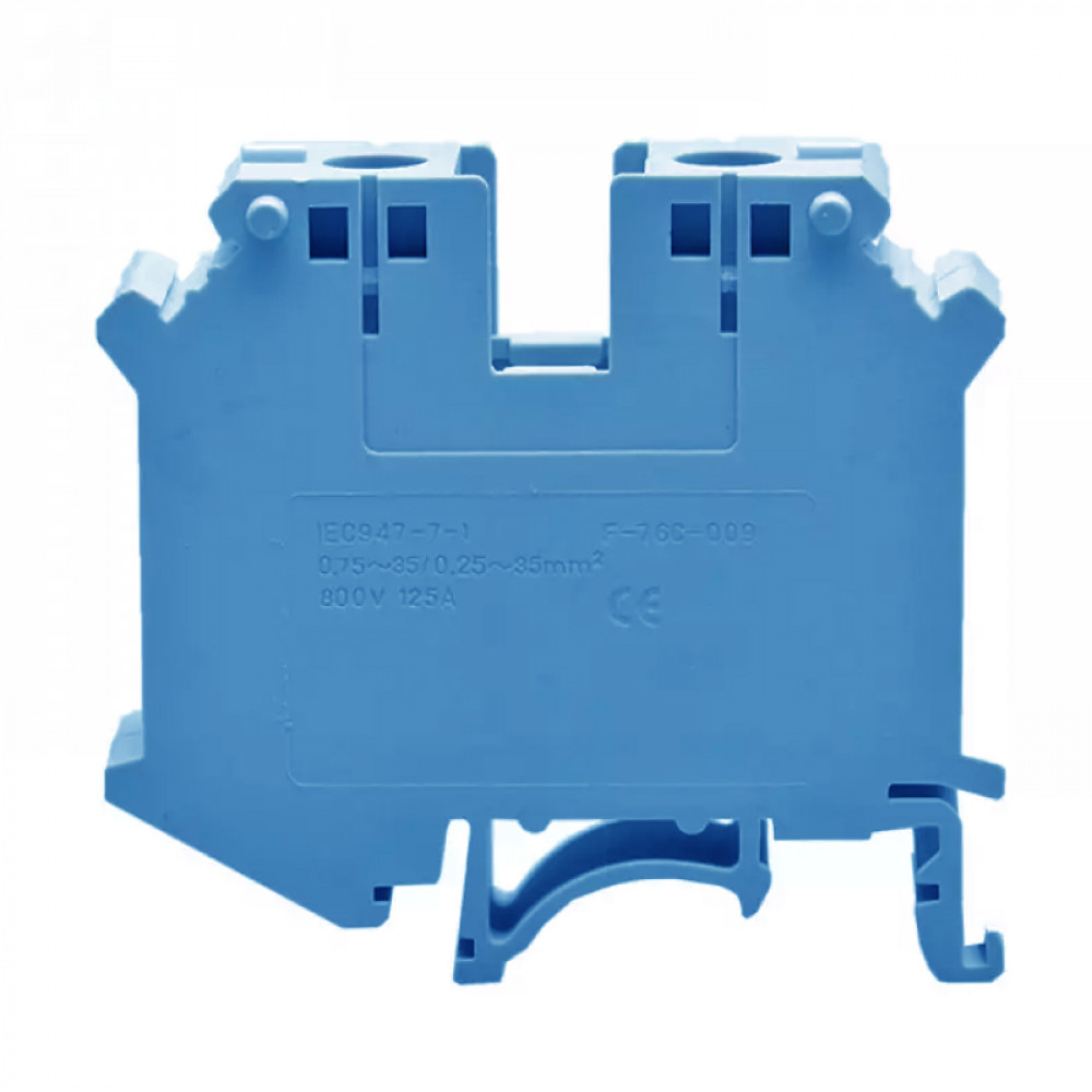 Проходная клемма, тип фиксации провода: винтовой, номинальное сечение: 35 мм кв., 125A, 1000V, ширина: 15,2 мм, цвет: синий, тип монтажа: DIN35