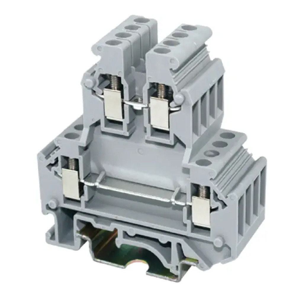 Этажная клемма, 2 этажа, тип фиксации провода: винтовой, номинальное сечение: 4 мм кв., 24A, 500V, ширина: 6,2 мм, цвет: серый, тип монтажа: DIN35 стандарт GB/T14048.1,
