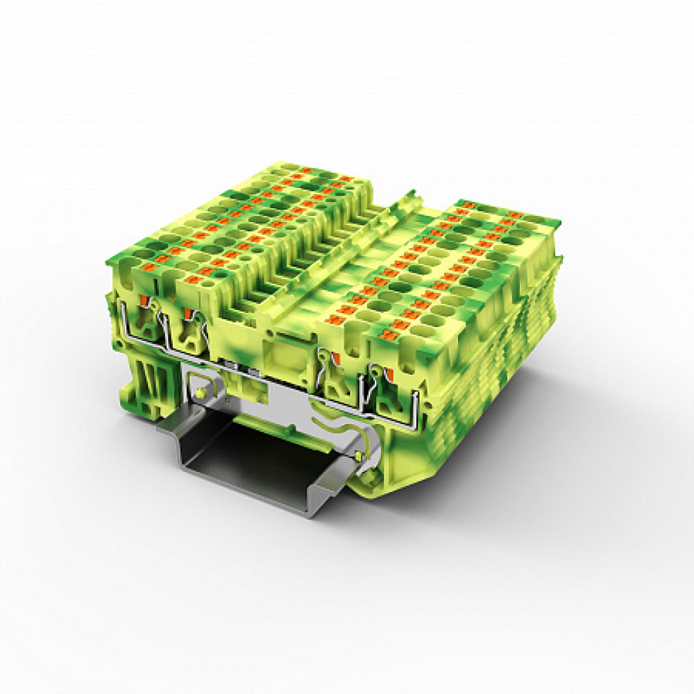 Заземляющая клемма, 4 точки подключения, тип фиксации провода: Push-in, номинальное сечение: 1,5 мм кв., 17,5A, 500V, ширина: 3,5 мм, цвет: желто-зеленый, тип монтажа: DIN35