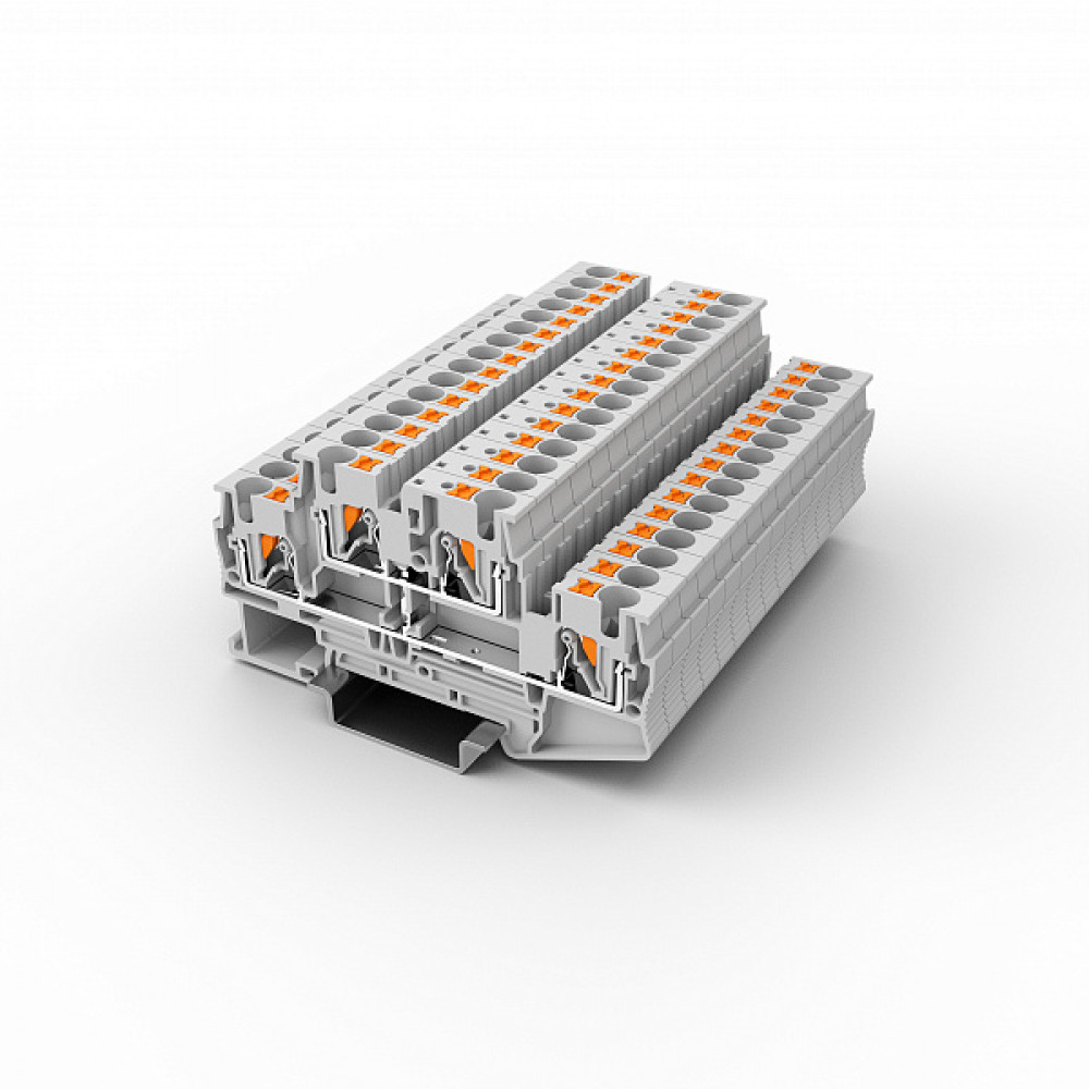 Этажная клемма, 2 этажа, межэтажное соединение, тип фиксации провода: Push-in, номинальное сечение: 4 мм кв., 32A, 800V, ширина: 6,2 мм, цвет: серый, тип монтажа: DIN35