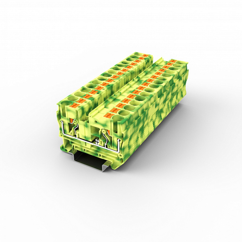 Заземляющая клемма, тип фиксации провода: Push-in, номинальное сечение: 6/10 мм кв., 1000V, ширина: 8 мм, цвет: желто-зеленый, тип монтажа: DIN35