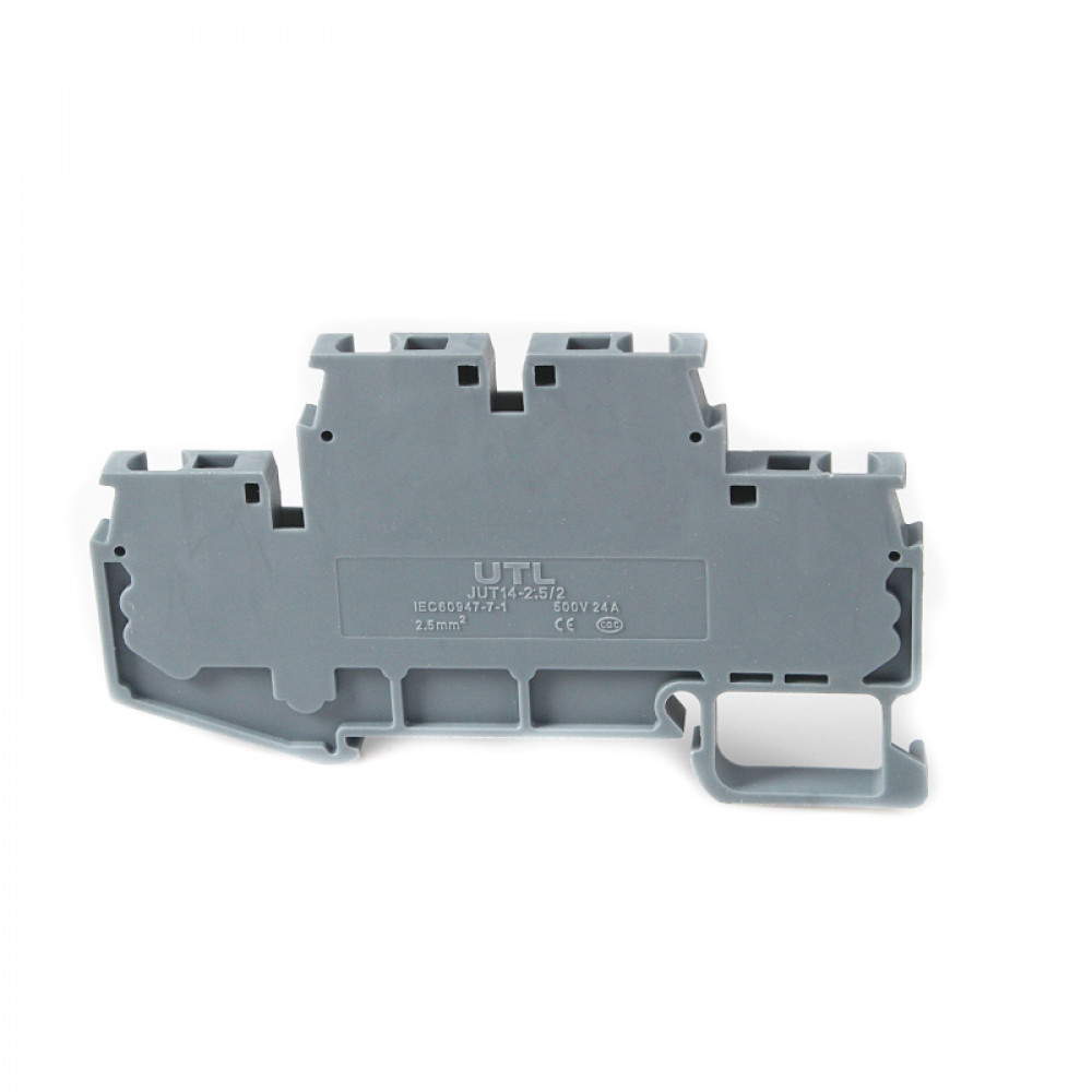 Этажная клемма JUT14-2.5/2-DK/GY, Этажная клемма, 2 этажа, тип фиксации провода: пружинный, номинальное сечение: 2,5 мм кв., 24A, 800V, ширина: 5,2 мм, цвет: темно-серый, тип монтажа: DIN35