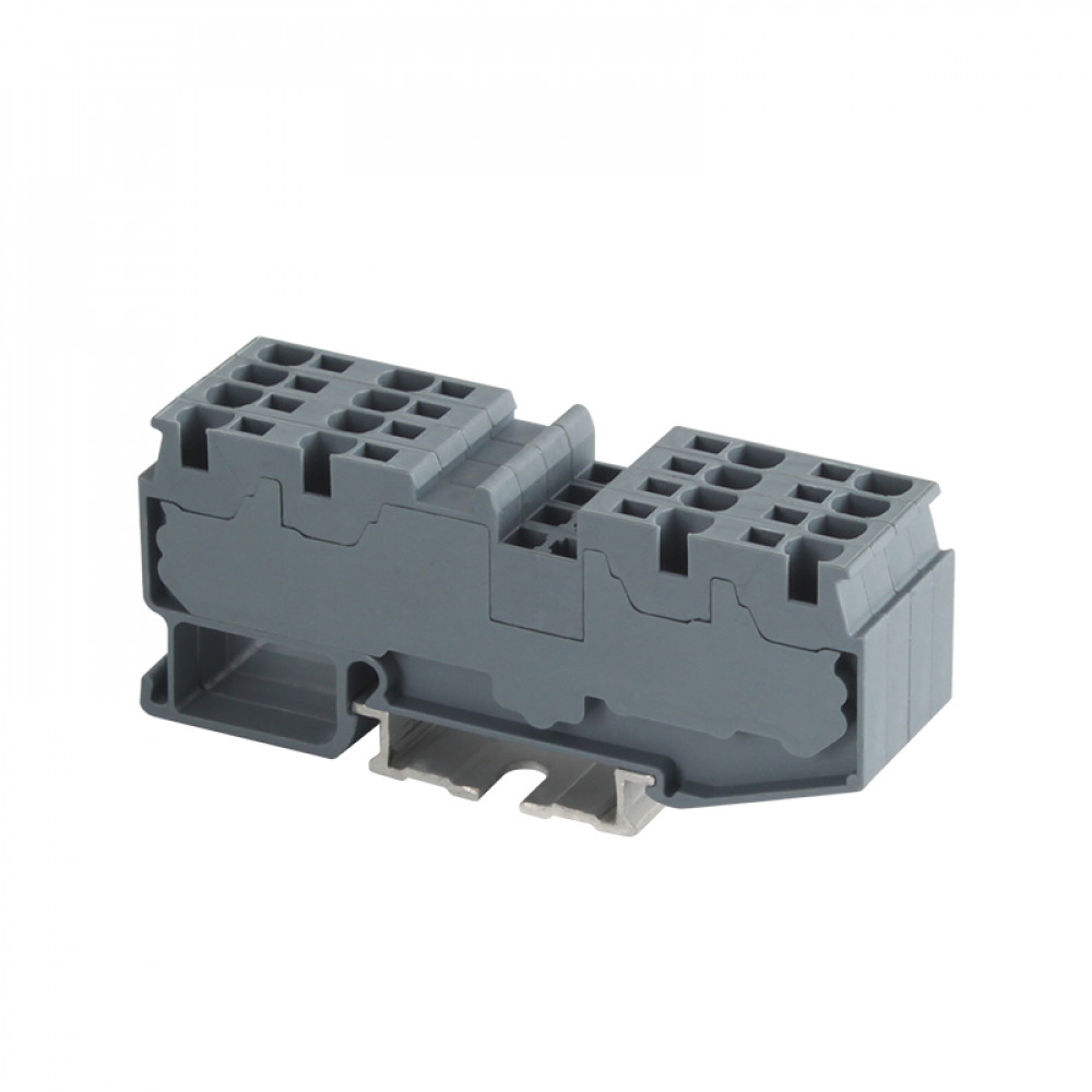 Проходная клемма, 4 точки подключения, тип фиксации провода: пружинный, номинальное сечение: 4 мм кв., 40A, 800V, ширина: 6,2 мм, цвет: серый, тип монтажа: DIN35, стандарт GB/T14048.1,