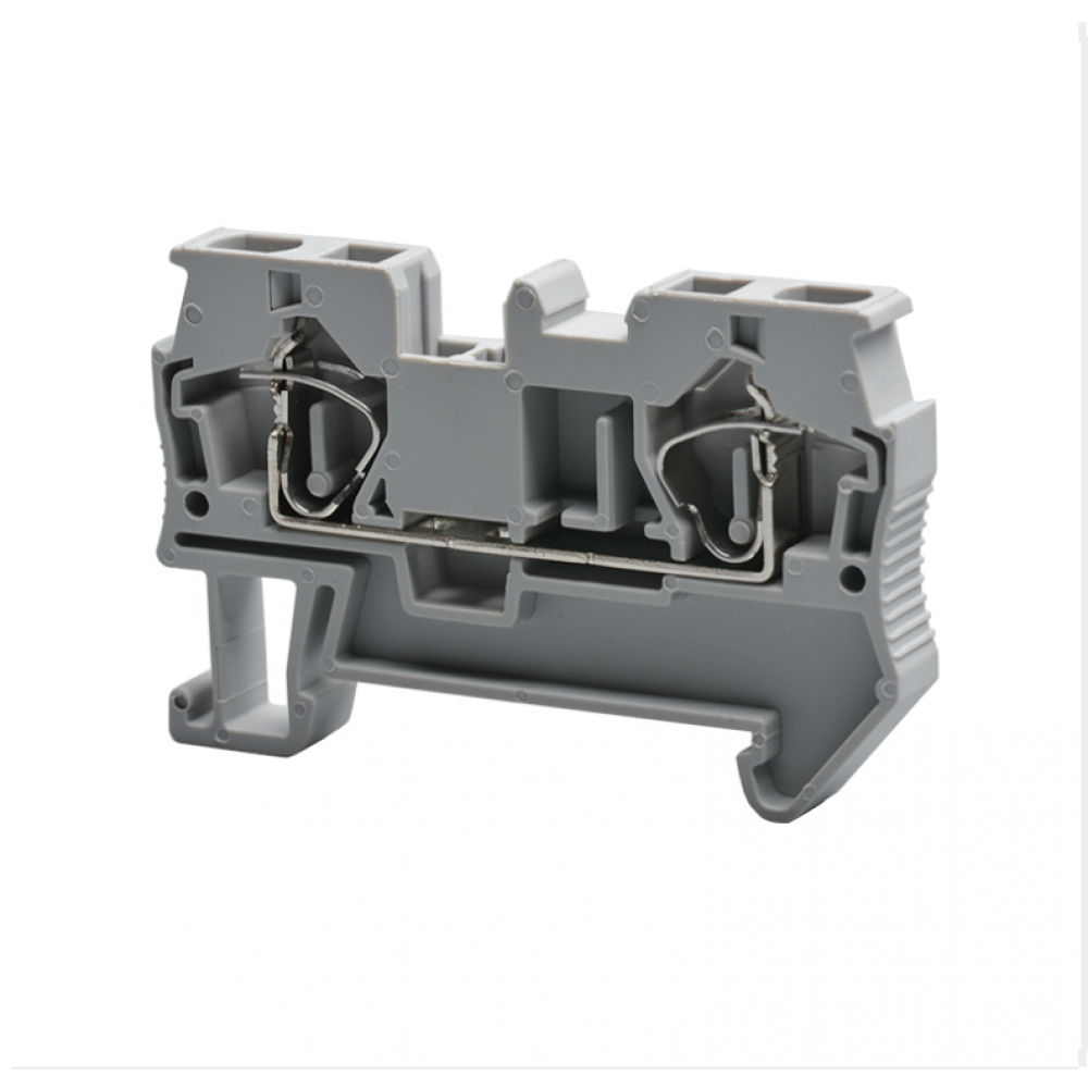 Проходная клемма, тип фиксации провода: пружинный, номинальное сечение: 4 мм кв., 40A, 800V, ширина: 6,2 мм, цвет: серый, тип монтажа: DIN35, стандарт GB/T14048.1,