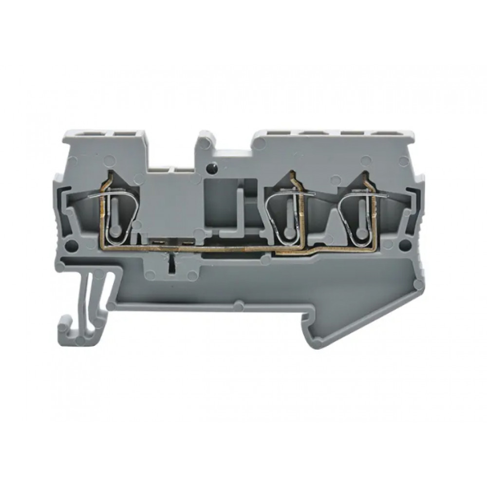 Проходная клемма, 3 точки подключения, тип фиксации провода: пружинный, номинальное сечение: 4 мм кв., 32A, 1000V, ширина: 6 мм, цвет: серый, тип монтажа: DIN35