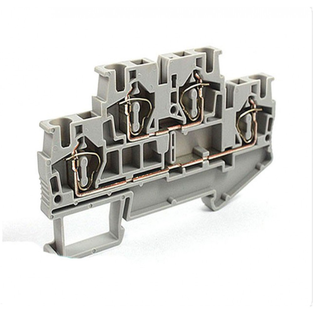 Этажная клемма, 2 этажа, тип фиксации провода: пружинный, номинальное сечение: 4 мм кв., 32A, 500V, ширина: 6,2 мм, цвет: серый, тип монтажа: DIN35, стандарт GB/T14048.1,