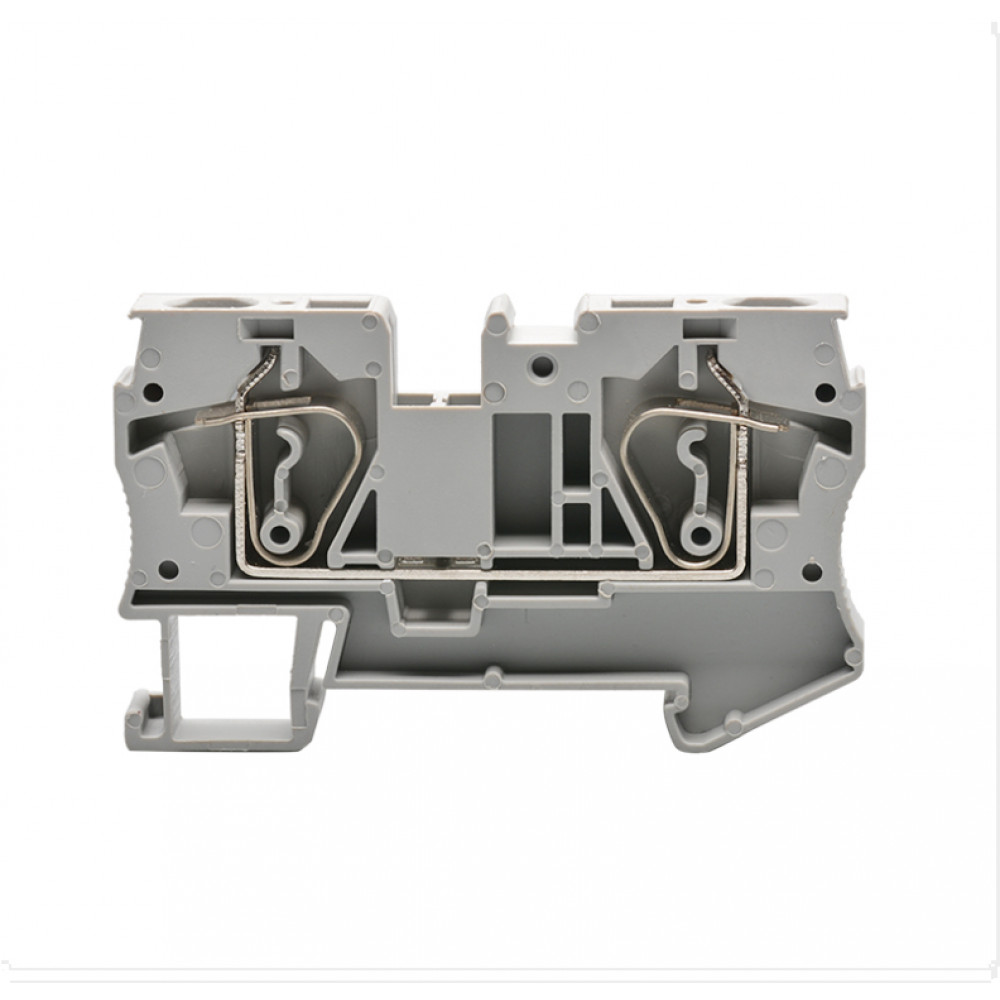 Проходная клемма, тип фиксации провода: пружинный, номинальное сечение: 6 мм кв., 52A, 800V, ширина: 8,2 мм, цвет: серый, тип монтажа: DIN35, стандарт GB/T14048.1,