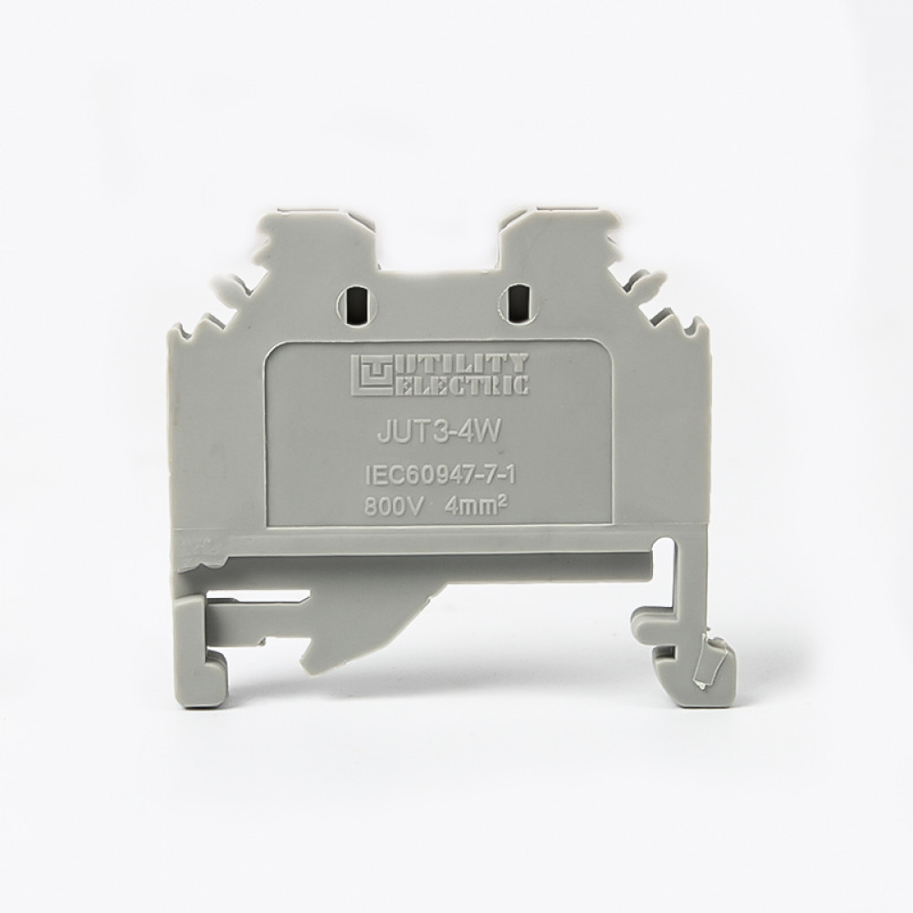 Проходная клемма JUT3-4W-GY, Проходная клемма, тип фиксации провода: пружинный, номинальное сечение: 4 мм кв., 32A, 800V, ширина: 6 мм, цвет: серый, тип монтажа: DIN35