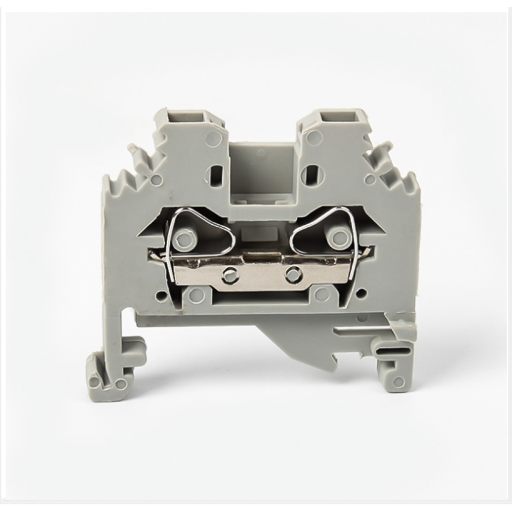 Проходная клемма, тип фиксации провода: пружинный, номинальное сечение: 6 мм кв., 52A, 800V, ширина: 8,2 мм, цвет: серый, тип монтажа: DIN35, стандарт GB/T14048.1,