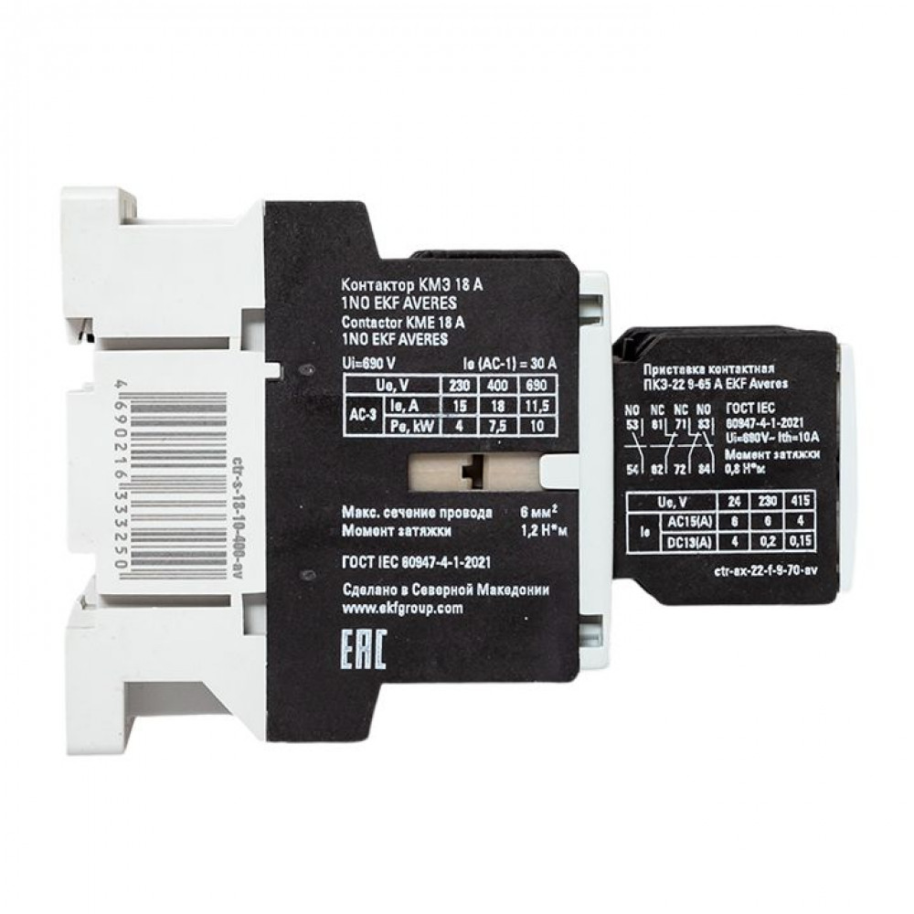 Комплект КМЭ 18А 1NO 400В АС с дополнительными контактами 2НО+2НЗ EKF AVERES ctr-s-18-10-400-av-22, Контактор малогабаритный (миниконтактор)