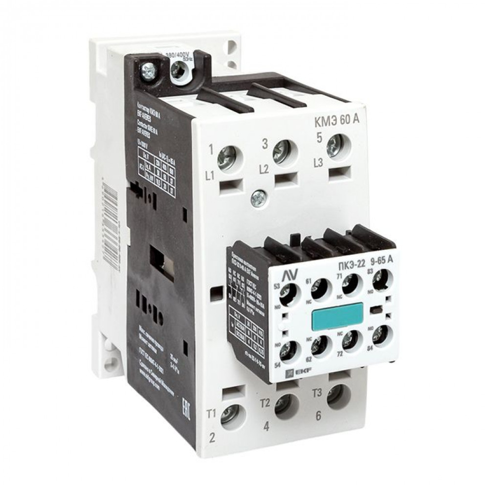 Описание Комплект КМЭ 60А 400В АС с дополнительными контактами 2НО+2НЗ EKF AVERES ctr-s-60-00-400-av-22