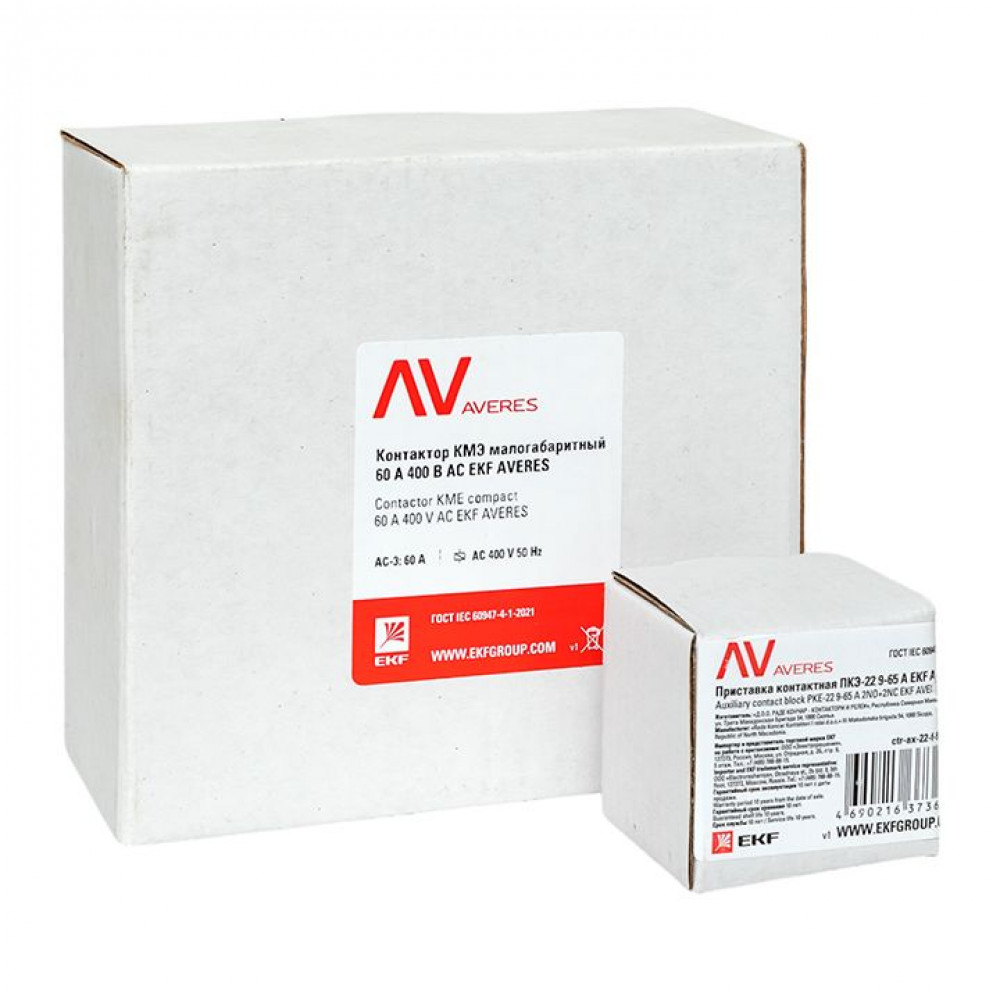 Комплект КМЭ 60А 400В АС с дополнительными контактами 2НО+2НЗ EKF AVERES ctr-s-60-00-400-av-22, Контактор малогабаритный (миниконтактор)