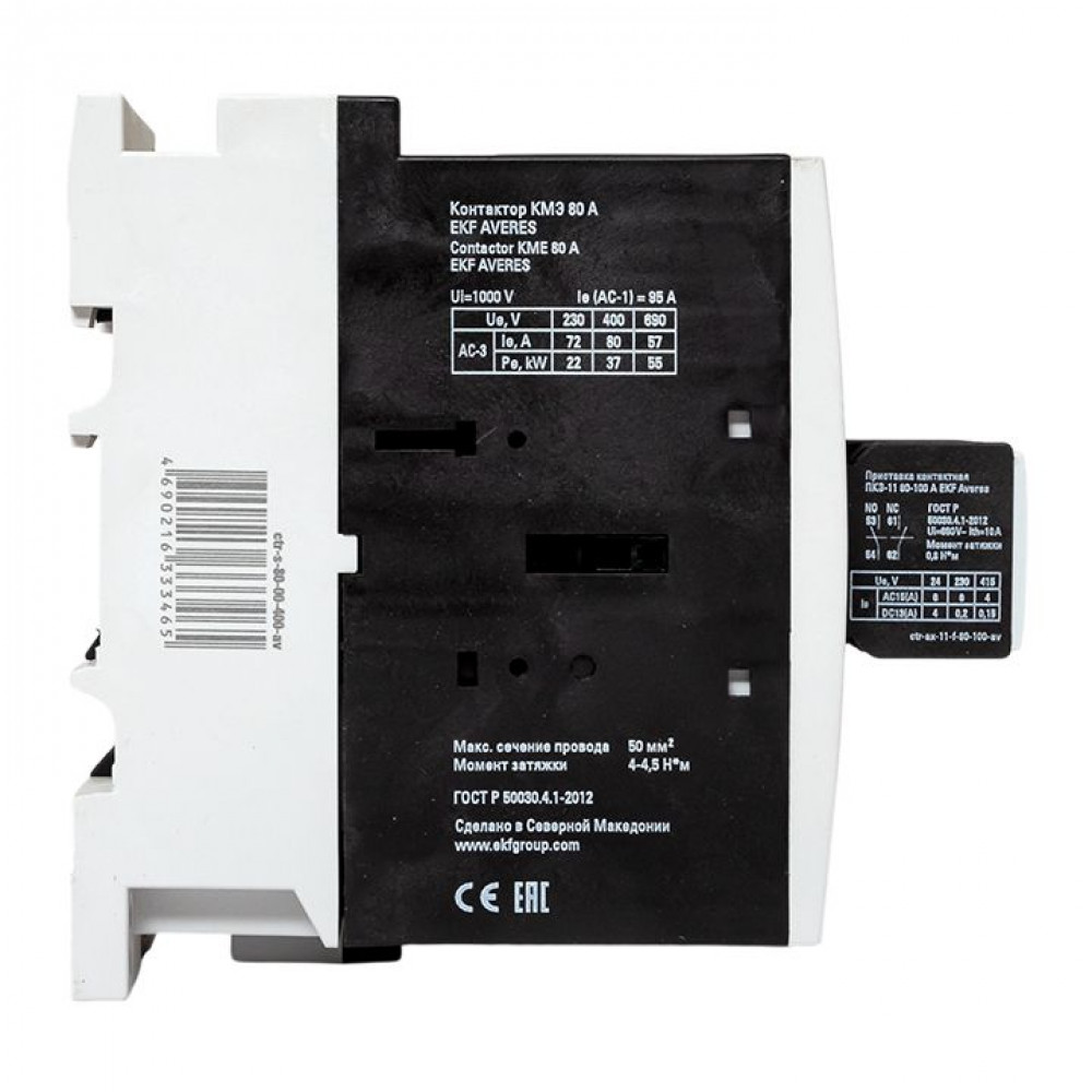 Описание Комплект КМЭ 80А 400В АС с дополнительными контактами 1НО+1НЗ EKF AVERES ctr-s-80-00-400-av-22