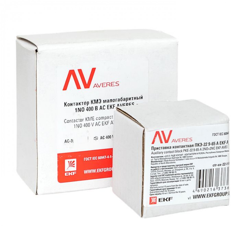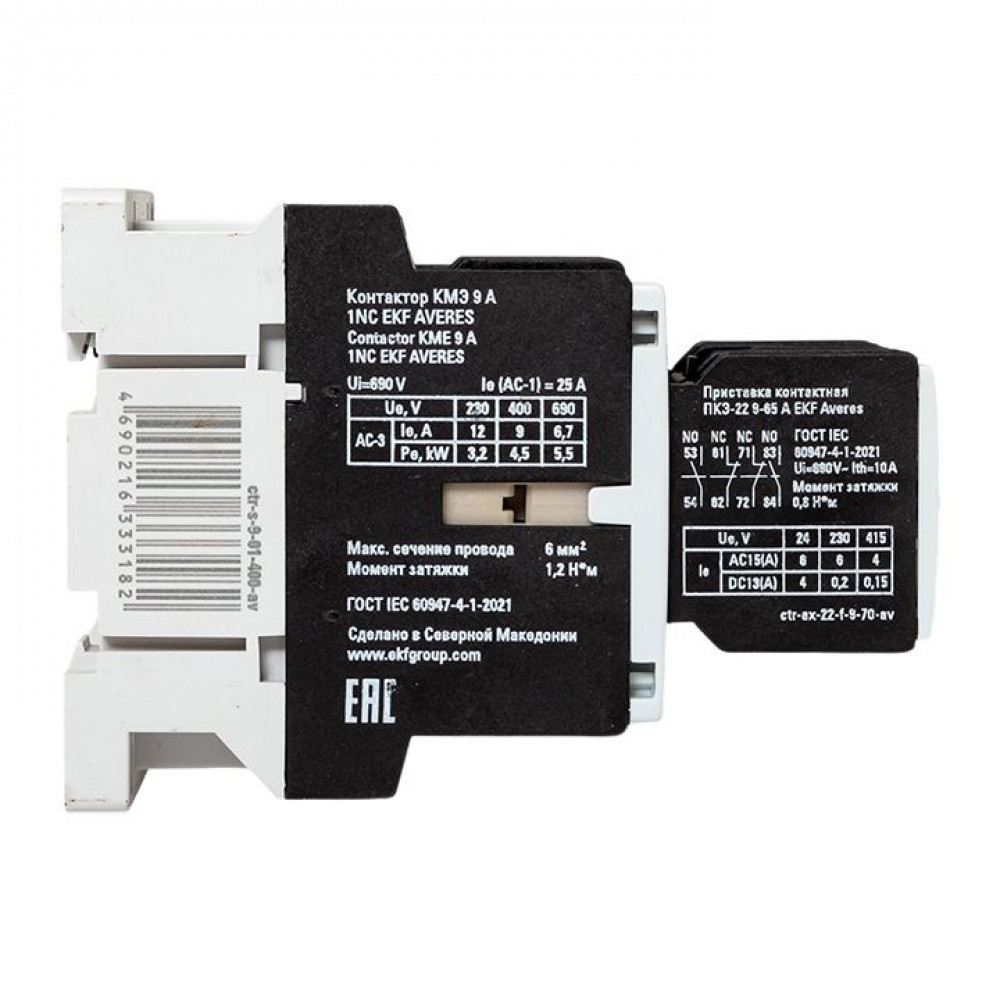 Комплект КМЭ 9А 1NC 400В АС с дополнительными контактами 2НО+2НЗ EKF AVERES ctr-s-9-01-400-av-22, Контактор малогабаритный (миниконтактор)