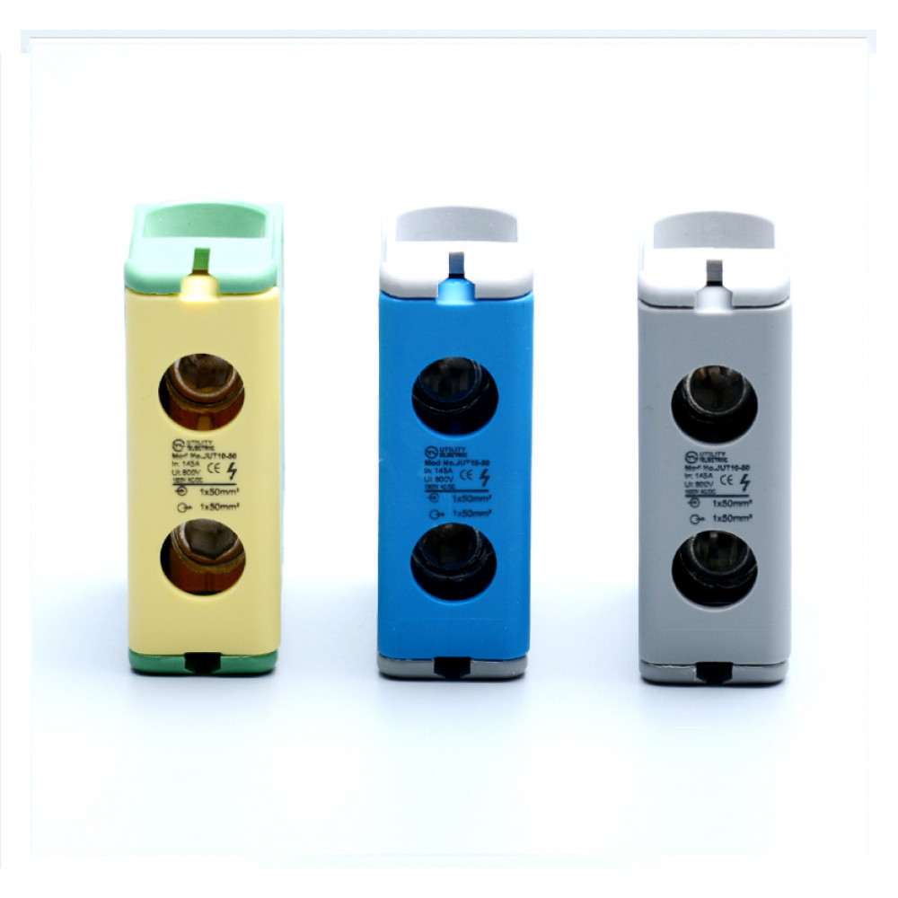 Заземляющая клемма JUT10-50PE, Заземляющая клемма, тип фиксации провода: винтовой, номинальное сечение: 50 мм кв., 160A, 1000V, ширина: 17,7 мм, цвет: желто-зеленый, тип монтажа: DIN35