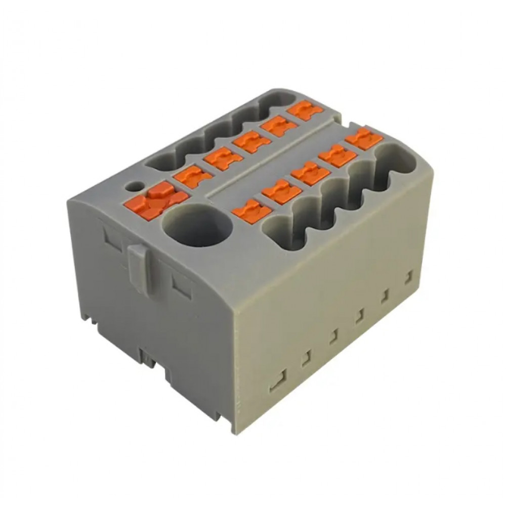 Доставка Распределительный блок JUT15-6-10x2.5-GY , Распределительная клемма, 10 точек подключения, тип фиксации провода: Push-in, номинальное сечение: 2,5 мм кв., 690V, 41A, цвет: серый, тип монтажа: DIN35