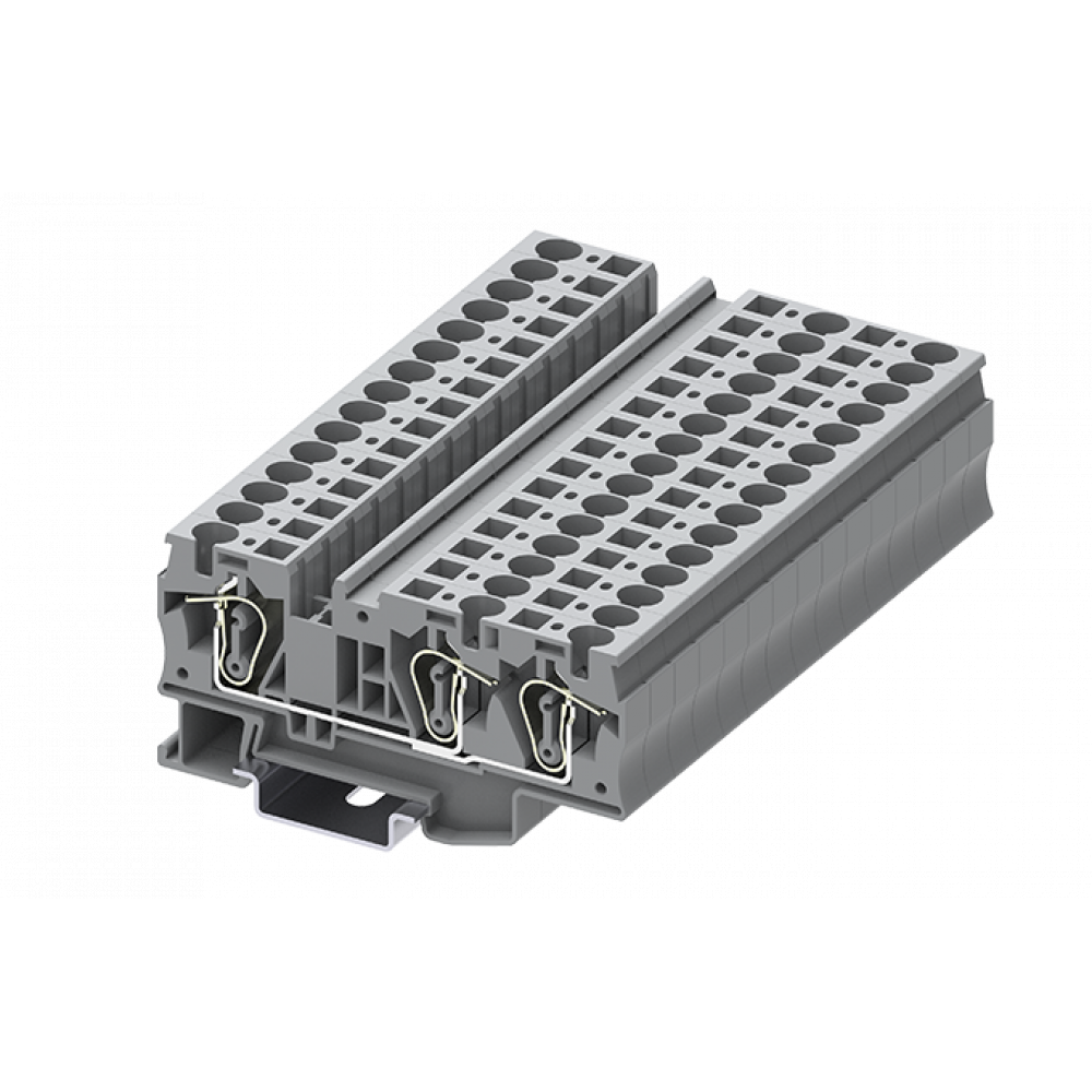 Проходная клемма, 3 точки подключения, тип фиксации провода: пружинный, номинальное сечение: 16 мм кв., 57A, 1000V, ширина: 12,2 мм, цвет: серый, тип монтажа: DIN35
