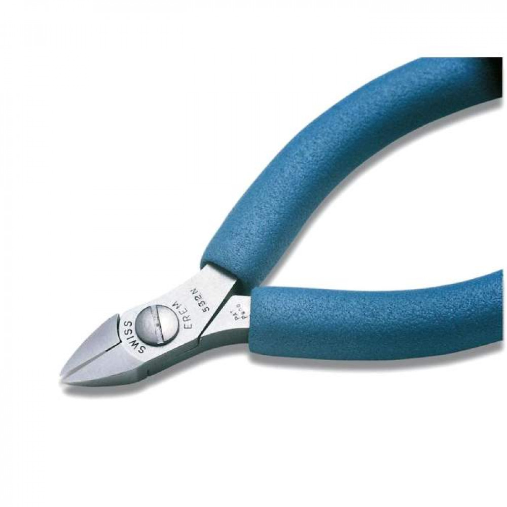 Абсолютно плоский срез, высококачественная инструментальная сталь, электростатически безопасны. Режущие стороны для универсального использования. Только для мягких проводов. Перекусывает: проволока средней жесткости – 0,8 мм, Cu – 1,6 мм; 115 мм, 67 г