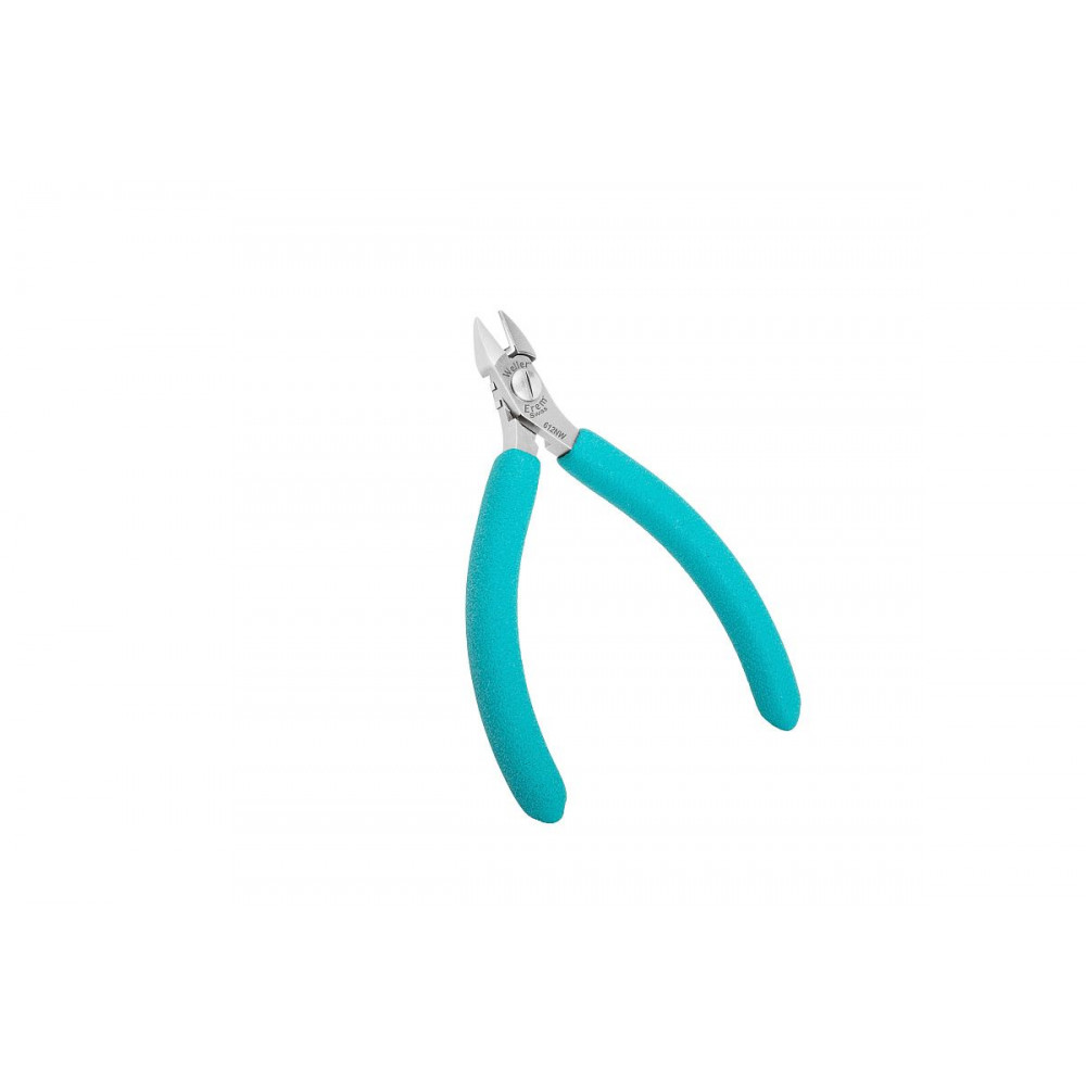 Стандартный срез, высококачественная инструментальная сталь, полированные, электростатически безопасны. Маленькая головка. Держатель проволоки. Перекусывает: проволока средней жесткости – 0,8 мм, жесткая – 0,5 мм, Cu – 1,3мм; длина 110 мм, 48 гр