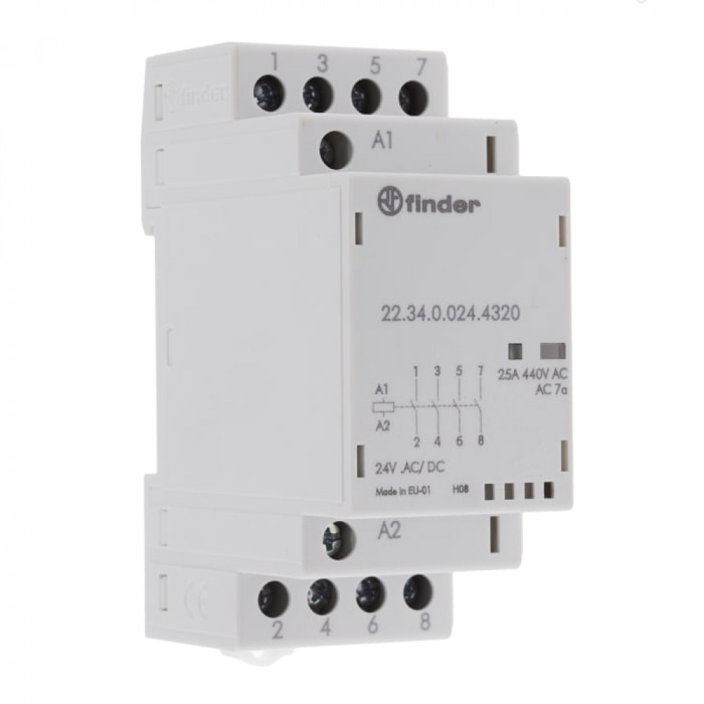 22 Series - Modular Monostable Relays 25 A modular contactors, available in 2/4 pole