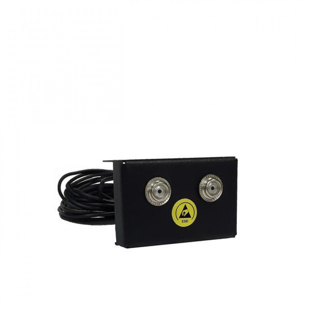Узел заземления УЗ-1, используется для подключения гарнитуры заземления браслетов и приборов. В комплекте провод заземления 3 метра, 2 кнопки для подключения браслетов и приборов