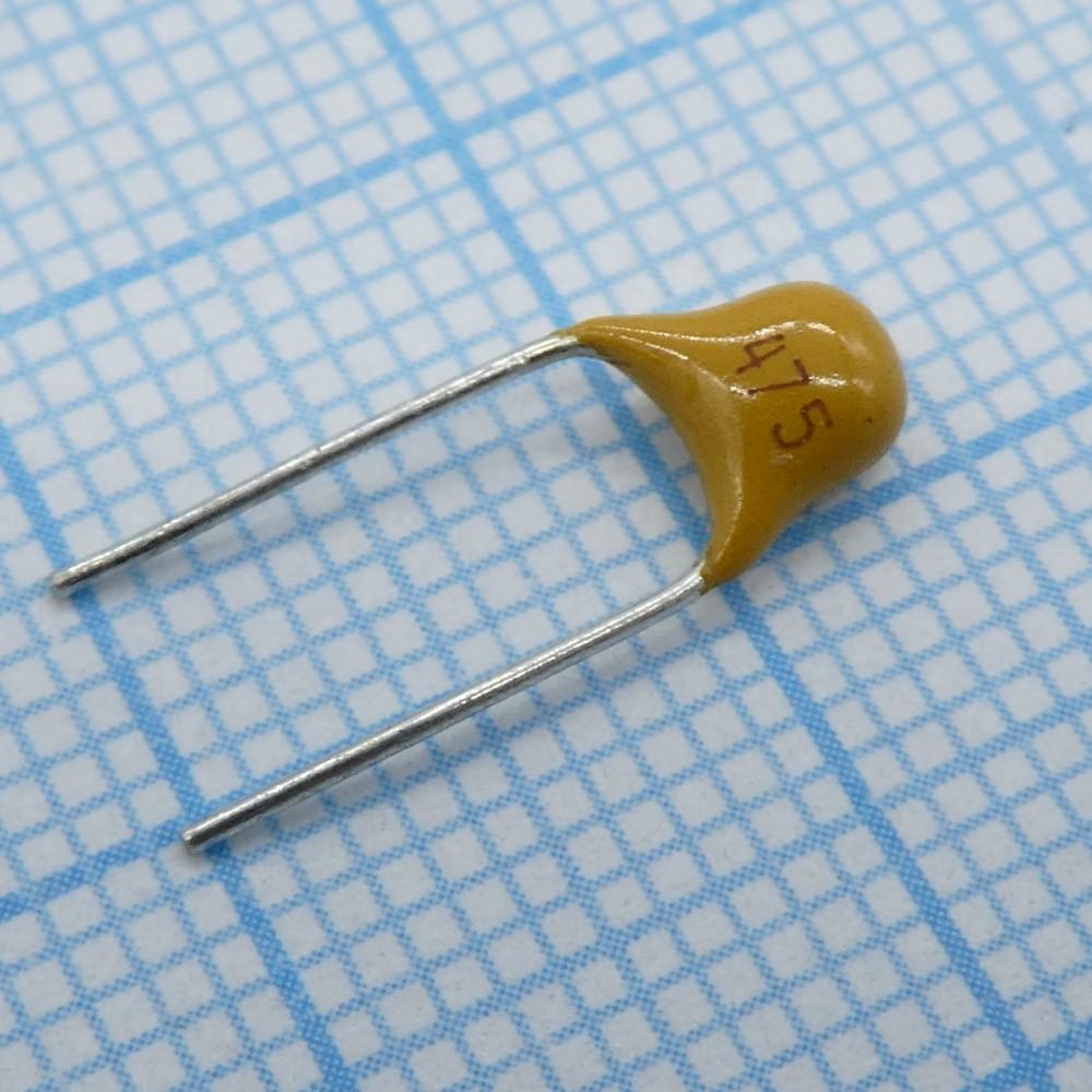 Конденсатор керамический многослойный 4.7мкФ 50В Y5V +80%-20% радиальный 5.08мм 85°C россыпь