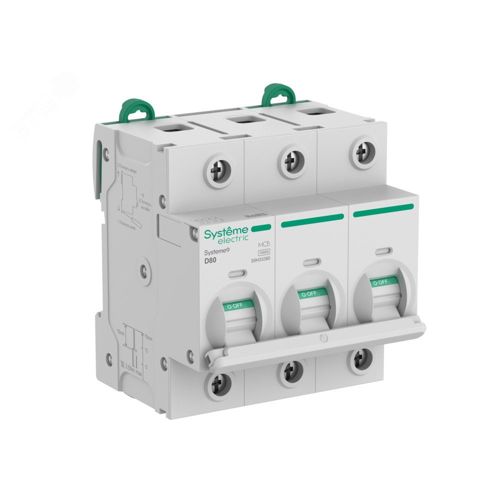 Автоматический выключатель (АВ) 27мм D 80A 3P 10 kA 400В Systeme9 S9H33380, Выключатель автоматический модульный