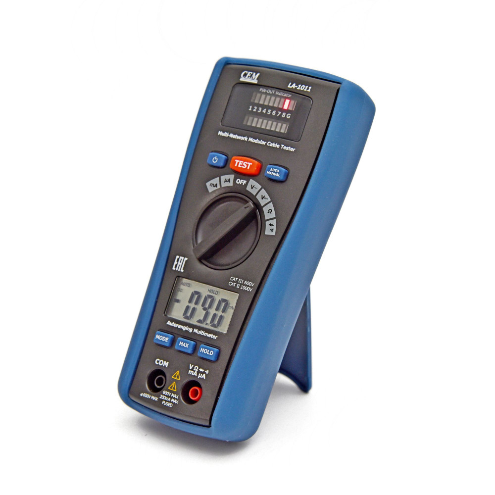 Мультиметр LA-1011 — универсальный прибор, объединяет в себе возможности мультиметра и LAN тестера. Возможности измерителя: