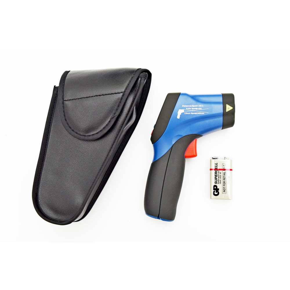 Пирометр работает от батареи на 9В или аккумулятора.