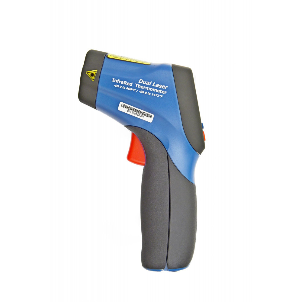 Термометр оборудован ЖК-дисплеем с подсветкой, на котором четко показываются результаты замеров крупным шрифтом, что упрощает процесс считывания информации. Двойной лазерный целеуказатель позволяет точно направлять устройство на объект измерения, что особенно важно в случае небольших объектов. Гаджет способен удерживать результаты на экране и рассчитывать минимальные и максимальные показания, сигнализируя пользователю о выходе за границы настроенного диапазона. Пользователь может вручную устанавливать эти пороги.