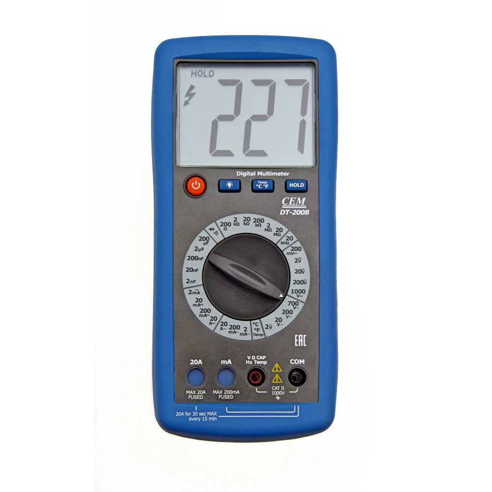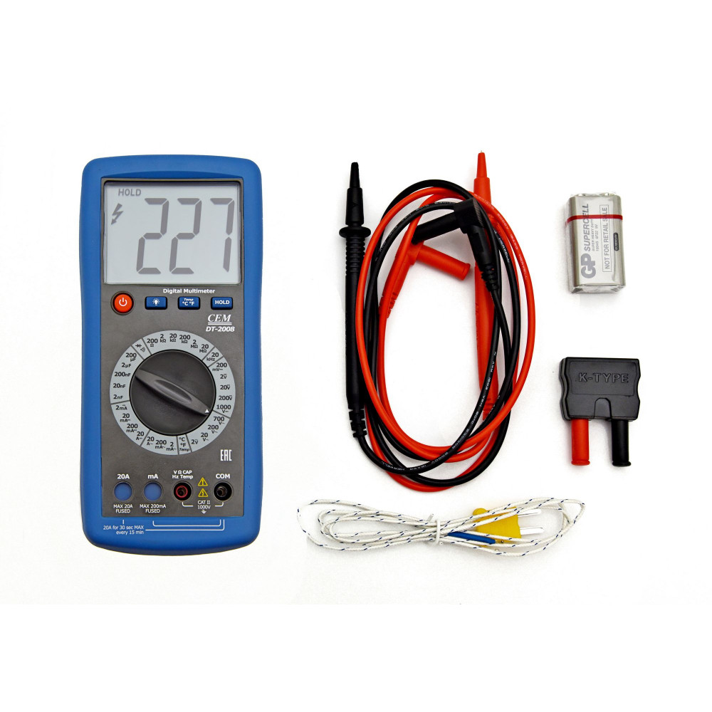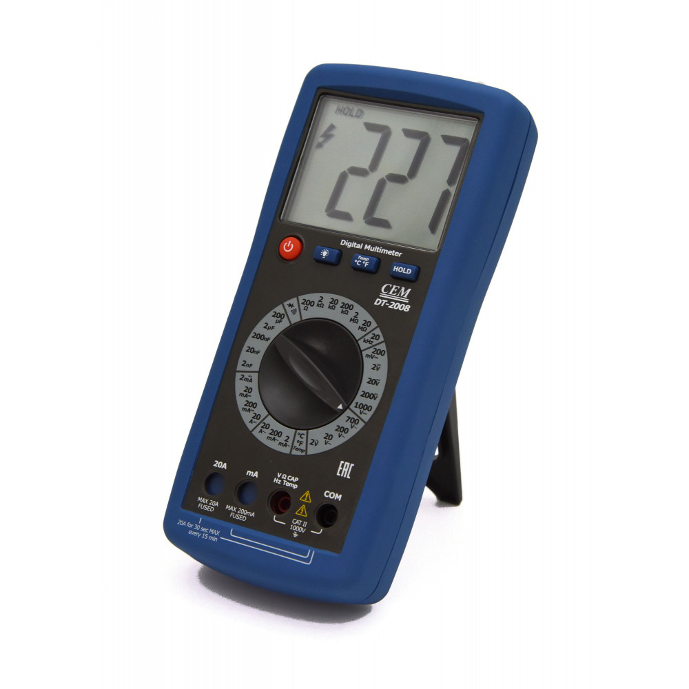 Цифровой Мультиметр DT-2008 — аппарат, измеряющий параметры электроцепи и силового электрического оборудования. Совмещает функцию измерителя температуры в диапазонах до 760°C — можно проводить диагностику электроприборов и их узлов без применения дополнительных устройств. Мультиметр измеряет: