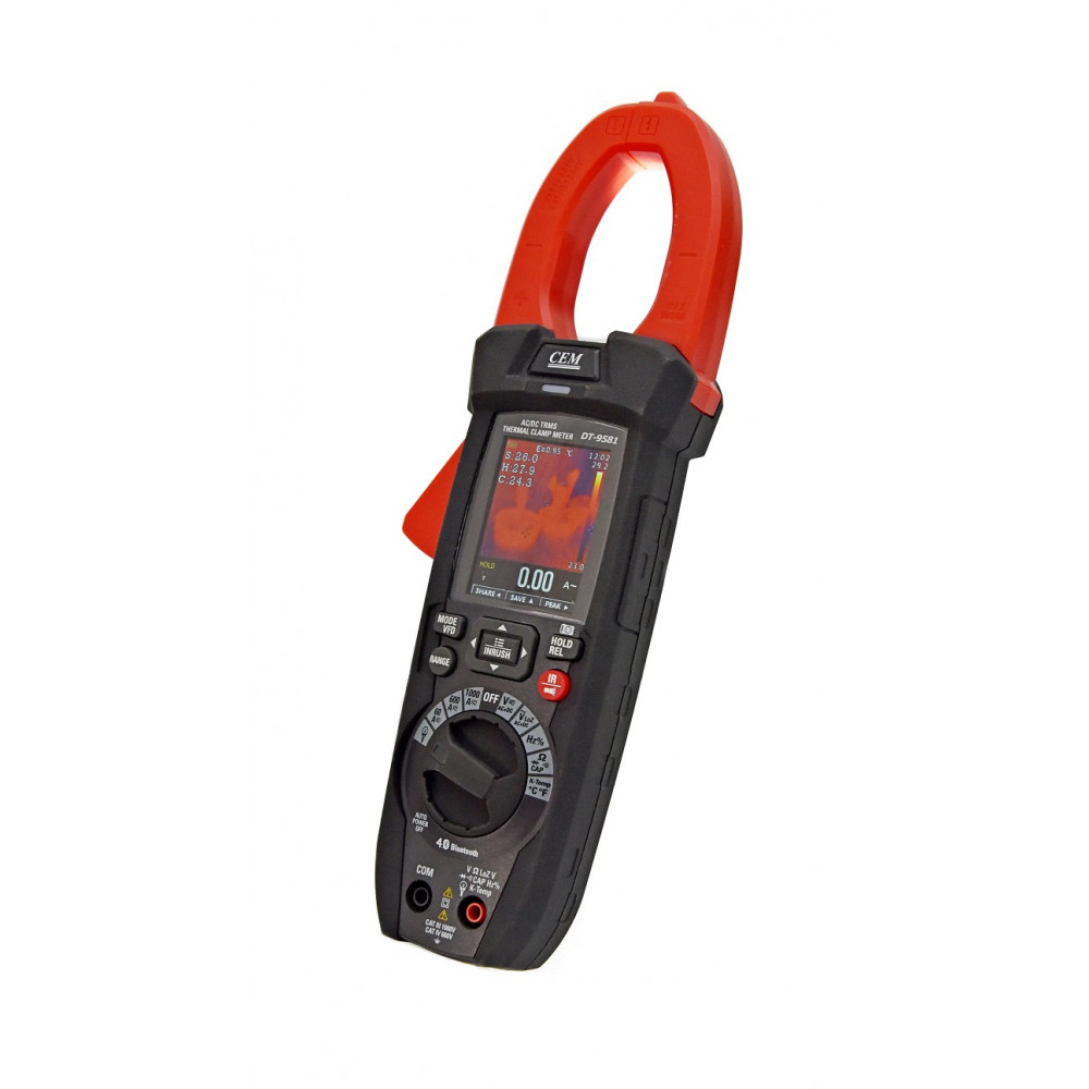 Профессиональные, промышленные токоизмерительные клещи TRMS с встроенным тепловизором оснащены цветным TFT ЖК-дисплеем и обеспечивает аналого-цифровое преобразование сигнала с высокой точностью и малым временем отклика. Пользуясь этим устройством, можно без труда обнаружить и затем устранить проблемы в проводке промышленного оборудования, эта работа облегчается благодаря применению Bluetooth-технологии. Безопасность измерений гарантируется за счет применения усиленного пластмассового корпуса