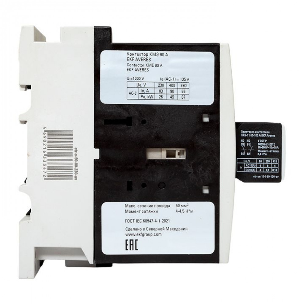 Комплект КМЭ 90А 230В АС с дополнительными контактами 1НО+1НЗ EKF AVERES ctr-s-90-00-230-av-22, Пускатель и контактор магнитный