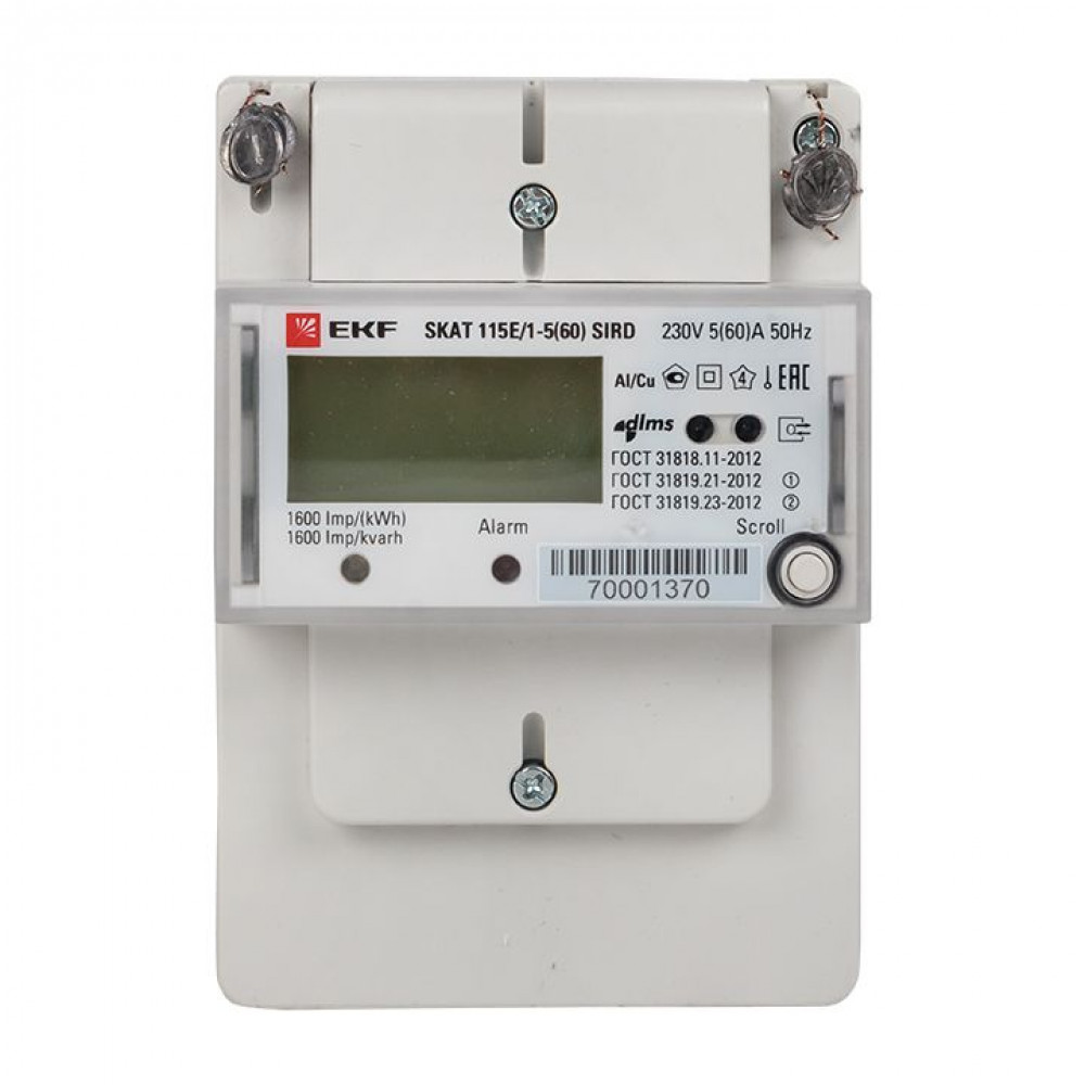 Счетчик электрической энергии однофазный многотарифный SKAT 115E/1-5(60) SIRD EKF 2т МСК+0 11501R, Счетчик однофазный