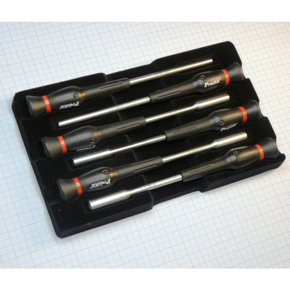 Набор отверток ProSkit 8PK-SD003N, Набор презиционных отверток с торцевыми головками: 6 отверток в наборе, Вращающаяся шляпка, Пластиковый футляр