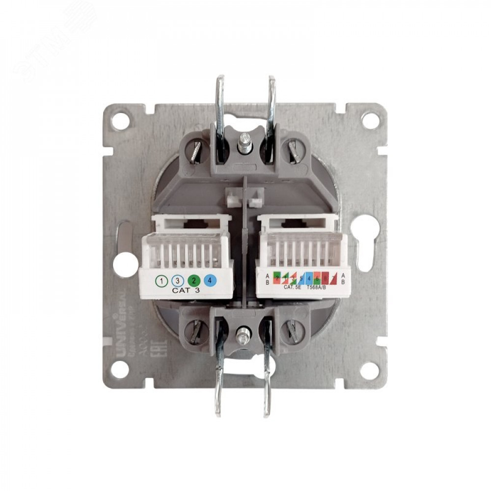 Розетка компьютерная+телефонная UNIVersal серия Афина, с/у, 1А, RJ45, RJ12, белая (еврослот), механизм A0052, Розетка скрытого монтажа