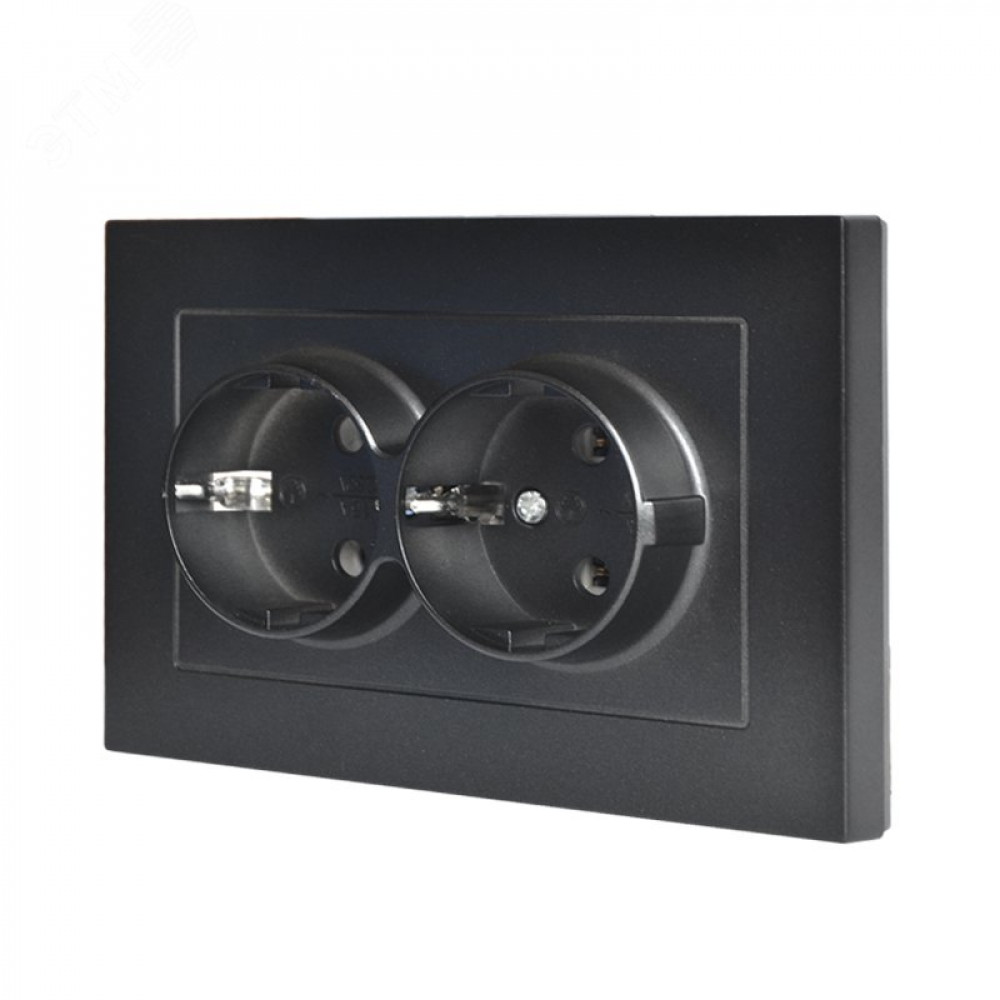 Описание Розетка двухместная UNIVersal серия Афина с/з, с/у, 16А, 220В, графит (еврослот), механизм A0128-Gr