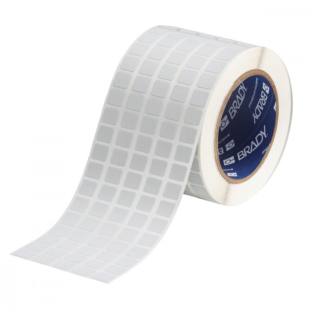 THT-12-438-10 этикетки, материал В-438, серебристый контроль вскрытия "шахматка", размер 12.7х11.10мм, 10 000 шт. в рул.