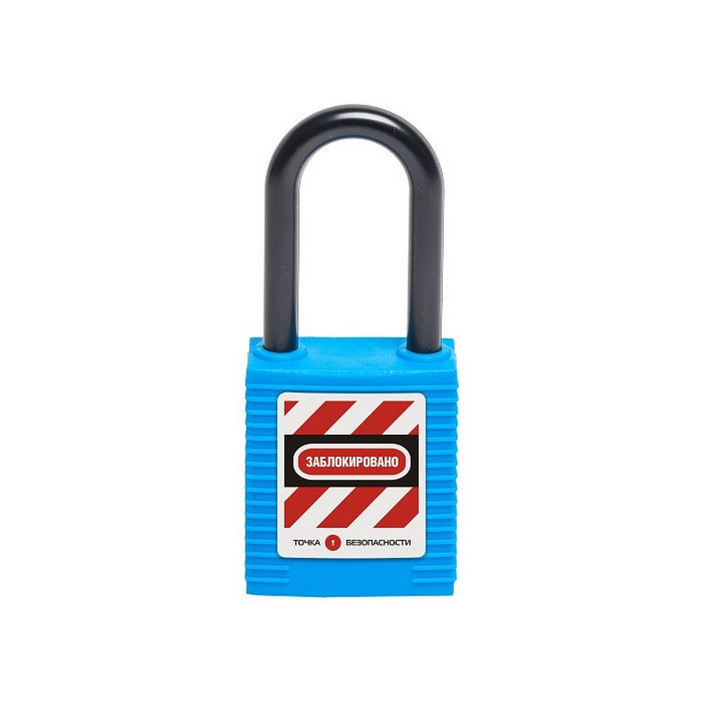 Замок блокировочный с нейлоновой дужкой, дисковый цилиндр, высота дужки – 38 мм, диаметр дужки – 6.2 мм, нейлоновый корпус, размеры корпуса – 45х38х20 мм, цвет – синий, 1 шт/упак